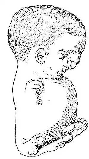 - Limb malformations- bilateral symmetric tetraphocomelia, oligodactyly, thumb aplasia, syndactyly, clinodactyly, and elbow and knee flexion contractures