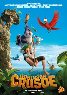 Robinson Crusoe (released in North America as The Wild Life) is a 2016 Belgian-French 3D computer-animated adventure comedy film directed by Vincent Kesteloot and Ben Stassen and written by Lee Christopher, Domonic Paris and Graham Weldon. The film is loosely based on the 1719 novel Robinson Crusoe by Daniel Defoe, but from the point of view of the island's animals. The film was released in the United States on September 9, 2016. Despite receiving negative reviews from the critics and earning a 17% approval rating on Rotten Tomatoes,[3] Robinson Crusoe was a moderate box office success, grossing $39.5 million worldwide against a budget of $13 million.[1]