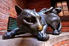 Located on the outside of the Robin Crusoe House are two sculptures from Bernhard Hoetger called "Panther carrying the Night (1912)" and "Puma carrying the Day (1912)".[5]