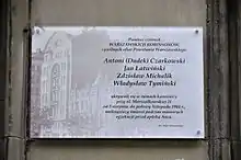| 10 | Władysław Kobus, Zofia Kobus, 4 unknown. Jakow Mienżycki, Aron Mienżycki, Isaj Dawidowicz, Abram Klinkier | Żelazna 95c | Group encountered by Vasily Grossman upon entrance of the Red Army into ruins of Warsaw. Their hideout was a bunker on the fourth story of a bombed out house.[8] |