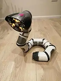 Roboboa is a robotic snake produced by WowWee. Roboboa has 4 angled body sections, allowing Roboboa to coil by rotating adjacent sections. A motorized tail roller and casters on the midsection allow Roboboa to move in a straight line.