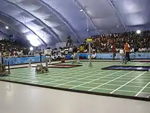 The National ABU Robocon 2015 took place in the Badminton Hall of the Shree Shiv Chhatrapati Sports Complex, Balewadi, Pune on 7 March 2015. The theme for Robocon 2015 has been declared by Televisi Republik Indonesia (TVRI) as "Robomintion: Badminton Robo-Game".[18] Institute of Technology, Nirma University, Ahmedabad won the National ABU Robocon 2015 Contest and were the first runners-up. Muffakham Jah College of Engineering and Technology (MJCET) stood third in the country and was also awarded the ‘Best Design and Aesthetics’ robot at the Asia Pacific Broadcasting Union Robotics Contest (ABU Robocon) 2015 held at Maharashtra Institute of Technology, Pune. U.V.Patel College of Engineering, Mehsana, Gujarat won the Best IDEA Award.