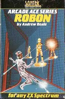 Robon is a clone of Berzerk for the ZX Spectrum written by Andrew Beale and released by Softek in 1983.[1] The game's documentation refers to it as a "version of the popular arcade game."