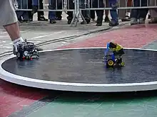 Robot-sumo, or pepe-sumo, is a sport in which two robots attempt to push each other out of a circle (in a similar fashion to the sport of sumo). The robots used in this competition are called sumobots.[1]