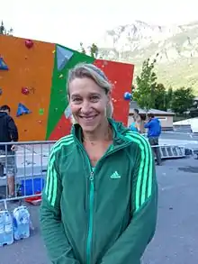 Robyn Erbesfield-Raboutou (born 8 August 1963), is an American rock climber and rock climbing coach. She is a 4-time World Cup champion (1992, 1993, 1994, 1995), and won the biennial World Championships in 1995. She is the third-ever woman in history to climb a 5.14a (8b+) graded sport climbing route. She has coached several competition climbers, including Megan Mascarenas, Margo Hayes and her daughter, Brooke Raboutou.[1][2]