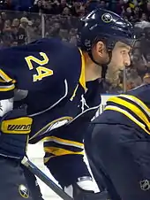 After missing the playoffs in the two previous seasons and needing to clear salary cap space to sign Alex Tanguay,[48] the Flames dealt Regehr to the Buffalo Sabres on June 25, 2011. He was sent to Buffalo, along with Aleš Kotalík and a second round selection at the 2012 NHL Entry Draft in exchange for Paul Byron and Chris Butler. According to Flames' general manager Jay Feaster, the deal "surprised" Regehr, who initially was unsure he would waive his no-trade clause and agree to the deal. Regehr accepted the deal after speaking with Sabres' management.[49]