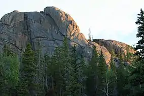 The Rock Creek Roadless Area (B032) is located northwest of Buffalo, Wyoming, in the Bighorn National Forest. It comprises roughly 34,000 acres (140 km2) of forested timberlands, mountain parks, rugged canyons, and stunning rock formations. This area represents the entire spectrum of environments found in the Bighorn National Forest and encompasses prairie land to high alpine peaks. This roadless area is the source of the north, middle, and south forks of Rock Creek, Balm of Gilead Creek, Pheasant Creek, and Ditch Creek. The area is flanked on the eastern side by the Bud Love Big Game Winter Range and the HF Bar Ranch Historic District. On the southern side the roadless area is surrounded by the Paradise Guest Ranch. The roadless area is home to elk, moose, mountain lion, pine marten, blue grouse, ruffed grouse, and raptors. The Rock Creek area is the largest area of quality elk security habitat outside of the Cloud Peak Wilderness Area and would provide an important corridor from the high country to the Bud Love Habitat Management Unit.[1] The Rock Creek roadless area is dominated by lodgepole pine, some ponderosa, and aspen stands with low-growing juniper in the undergrowth. The area has not been opened to roads due to the ruggedness of the landscape and the high costs of implementation.