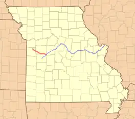 ![]() Location of the Rock Island Trail in red and the Katy Trail in blue | |