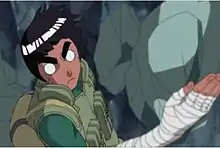 When Tsunade, a Konohagakure medical ninja, returns to lead the village as the Fifth Hokage, she offers to operate on him.[23] Despite the procedure's fifty percent chance of failure, Guy encourages Lee to have the operation. Ultimately, Lee undergoes the surgery, which succeeds in healing his arm and leg.[24] Immediately after the operation, Lee follows a team of ninja led by Shikamaru Nara who attempt to stop Sasuke Uchiha from defecting from Konohagakure to the village of Otogakure.[25] Lee battles the Otogakure ninja Kimimaro through using the Potion Punch (酔拳, Suiken, literally "Drunken Fist", English TV: "Loopy Fist") fighting style in which he becomes inebriated with unpredictable attacks.[26][27] When Kimimaro is on the verge of defeating Lee, Gaara intervenes, continuing the battle.[20]