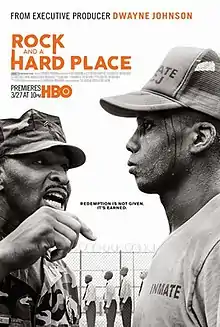 Rock and a Hard Place is a documentary film produced by and featuring Dwayne Johnson about youth prison boot camps in Miami, Florida, premiered by HBO in March 2017. Rock and a Hard Place, directed and co-produced by Oscar-nominated filmmakers Jon Alpert and Matthew O'Neill.[1][2][3][4] There is another documentary entitled "Jerusalem: A rock and Hard place".[5] This second films deals with life in the city of Jerusalem. They are not related.[6]