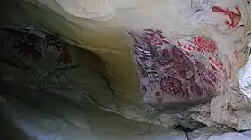 Chumash rock art is a genre of paintings on caves, mountains, cliffs, or other living rock surfaces, created by the Chumash people of Southern California. Pictographs and petroglyphs are common through interior California, the rock painting tradition thrived until the 19th century. Chumash rock art is considered to be some of the most elaborate rock art tradition in the region.[1]