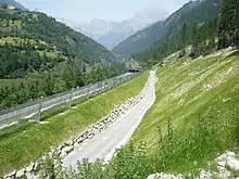 Rockfall protection embankments belong to the family of passive rockfall protection structures, comprising flexible barriers or galleries in particular.[2] They are intended for rockfalls with kinetic energies up to tens of megajoules and are preferred over flexible barriers when the design impact is higher than 5000 kJ.[3] Their declared advantages over other passive rockfall mitigation structures are low maintenance costs and reduced visual impact. Nevertheless, they are not appropriate on steep slopes and their construction generally requires extensive space and accessibility for heavy vehicles.
