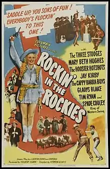 Rockin' in the Rockies is a 1945 musical Western full-length movie starring the Three Stooges (not to be confused with their 1940 short subject Rockin' thru the Rockies).[1] The picture was one of the Stooges' few feature-length films made during the run of their better-known series of short subjects for Columbia Pictures, although the group had appeared in supporting roles in other features. It is the only Stooges feature-length film with the team's best known line-up (Moe Howard, Larry Fine, and Curly Howard) in starring roles.