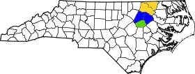 The Rocky Mount-Wilson-Roanoke Rapids Combined Statistical Area, as defined by the United States Census Bureau, is an area consisting of five counties in northeastern North Carolina. As of the 2010 census, the CSA had a population of 310,416, with an estimated population of 297,726 in 2018.[2] The statistical area includes the Rocky Mount Metropolitan Statistical Area, Wilson Micropolitan Statistical Area, and Roanoke Rapids Micropolitan Statistical Area, and the counties of Nash, Wilson, Edgecombe, Halifax, Northampton.