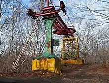 Rocky Point is a passive use area, with most of the former amusement park now open space.[13] A few structures from the amusement park remain, including the circa 1906 Circle Swing ride tower; the upper and lower stations and support towers from the Skyliner gondola ride; ruins of an old water tank; and a large arch by the entrance.[14][15] The arch, which was originally one of 11 “Peace Through Understanding” arches for the 1964/65 World's Fair in Flushing, Queens, NY, was subsequently moved to Rocky Point in 1966, and underwent restoration in 2016.[16][17][18][19] In the summer the park screens movies on its lawn and hosts a 5K run.[20][21] In 2017 and 2018, the state park hosted Food Truck Nights. A large public fishing pier was opened in July 2020.[22]
