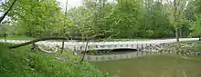 ![]() A shale cliff along the Rocky River in the Cleveland Metroparks Rocky River Reservation, located on the boundary of the cities of Lakewood and Rocky River, Ohio. | |