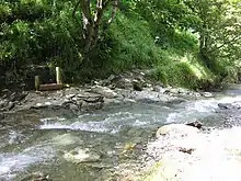 The valley has been carved by the Trevillet River (Cornish: Duwy, meaning dark river) in Trethevy around one mile east of Tintagel. At their highest point the slate canyon walls tower over seventy feet above the river below. Rocky Valley was mentioned in travel books as a place of exceptional beauty as early as 1897.[1] The valley is owned by the National Trust and is home to 161 different species of moss.[2] Saint Nectan's Glen is an area of woodland stretching for around one mile along both banks of the Trevillet River; its most prominent feature is St Nectan's Kieve.