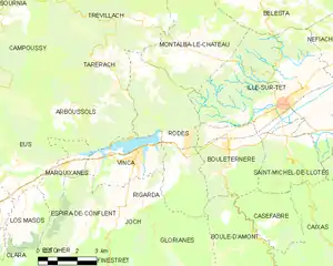 Map of Rodès and its surrounding communes