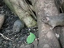 More specialized carnivores include the shrewlike rats of the Philippines, which feed on insects and soft-bodied invertebrates, and the Australian water rat, which devours aquatic insects, fish, crustaceans, mussels, snails, frogs, birds' eggs, and water birds.[34][35] The grasshopper mouse from dry regions of North America feeds on insects, scorpions, and other small mice, and only a small part of its diet is plant material. It has a chunky body with short legs and tail, but is agile and can easily overpower prey as large as itself.[36]
