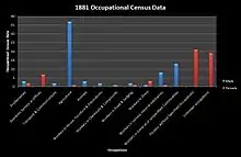 In the past agriculture and general workers were the most common occupation for males. Most females with declared occupations worked in domestic service.