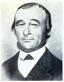 Born in the Netherlands in 1815, Roelof Smit grew up in the small town of Rouveen, Overijssel.[3] Roelof Smit attended seminary in Holland and was later recruited to pastor a congregation in the United States. Smit arrived in Drenthe, Michigan in 1851 and pastored a Reformed church until 1857 when his congregation seceded.[4] Albertus van Raalte was considered a theological opponent of Smit as they publicly disagreed with each other on a number of issues. Michael Douma has written that "Van Raalte fought bitterly with Roelof Smit, a minister in Drenthe, Michigan, whose congregation voted to leave the Reformed Church for the United Presbyterians."[4]