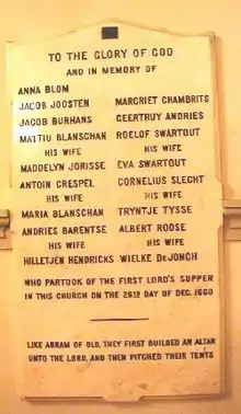 Roelof's second objective in visiting Holland had been to obtain a settled pastor for Esopus, and it was apparently accomplished on March 4, 1661, Thomas Chambers, Cornelius Barentsen Slecht, Gertruy Andries, Roeloff Swartwout, Alaerdt Heymensen Rose and Juriaen Westvael agreed in writing to give Blom (the Dutch pastor) as salary for the first year, to commence 9/5/1660,the sum of 700 guilders in corn, at beaver valuation in case his farm should fail, we promise further to put the farm in good order according to contract as soon as the land has been allotted and raise that sum at the latest for the coming farming season.