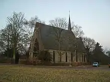 - Schwanenkirche (“Swan’s Church”), on Kreisstraße 25, south of the village – aisleless church, 1952, wayside cross, marked 1705