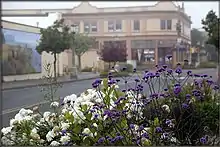 “The Firebaugh Kids” is a mural located in Exeter, California. The mural depicts three children of the town’s founder, John Franklin Firebaugh, in a wagon filled with milk containers being pulled by a horse.[2][8][9]