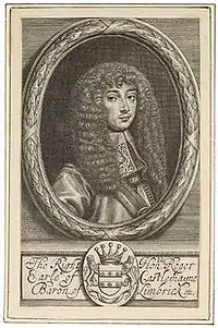 Roger Palmer, 1st Earl of Castlemaine, PC (1634–1705) was an English courtier, diplomat, and briefly a member of parliament, sitting in the House of Commons of England for part of 1660. He was also a noted Roman Catholic writer. His wife Barbara Villiers was one of Charles II's mistresses.