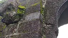 There are three gates on the main entrance path of the fort. The main entrance gate has a Ganesh patti and Miharab. There is a rock cut water cistern near the second gate. The water is available round the year for drinking purpose. There are idols of Lion and Sharabha on the second gate. After climbing 57 steps the third gate is reached. There are idols of heads of elephants on either side and rock cut inscripture in Persian and Marathi on the outer side of the gate. There is a temple of Rohidamalla in good condition on the fort. There are seven Bastions on the fort, they are Shirawale Buruj, Patane buruj, Damugade buruj, Waghjai Buruj, Fatte Buruj and Sadar buruj. In some books presence of Shirja buruj is also mentioned, but its location is unknown.[3] There is a series of rock-cut water cisterns on the southern side of the fort. It takes about an hour to visit all places on the fort.