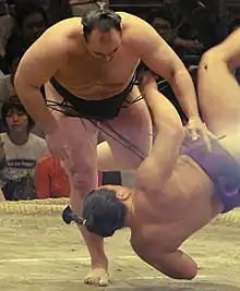 Roho was a yotsu-sumo specialist, who preferred a migi-yotsu, or left hand outside, right hand inside grip on his opponent's mawashi. His favourite techniques were yorikiri (force out) and uwatenage (overarm throw), although he also relied heavily on henka (side stepping) and pull-downs.[4] Hataki-komi, the slap-down, was his second most commonly used technique after yorikiri. Henka in particular is looked down upon by sumo purists, and Roho believed that his failure to receive a special prize from the Sumo Association in the March 2005 tournament, despite winning eleven bouts, was due to use of henka in his victory over Kotomitsuki.[5]