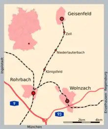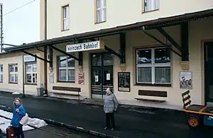 Rohrbach (Ilm) station (German: Bahnhof Rohrbach (Ilm)) is a railway station in the town of Rohrbach, located in Bavaria, Germany. Until 2000, it was called Wolnzach Bahnhof after the larger town Wolnzach five kilometers to the East.
