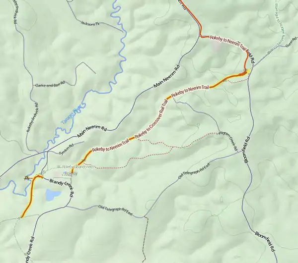 The Rokeby to Crossover Rail Trail is a shared use bike path following the former Noojee Railway Line between the small townships of Rokeby and Crossover in Gippsland, Australia. It is about 4 kilometres long. Another one-kilometre section of trail on the other side of Rokeby has also been converted to rail trail and is known as the Rokeby Flora and Fauna Rail Trail.
