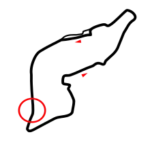 The next day, the second qualifying session proceeded as normal until the moment of his accident. Early in the session, Ratzenberger went off the track at the Acqua Minerale chicane.[9] With his sponsor in attendance for the first time, and at the halfway point of his contract, he decided to carry on, after checking the car to the best of his abilities.[4] Unknown to him, the minor incident had damaged his front wing; after a spin at the Tosa hairpin the previous lap, as he tried to turn into the high-downforce Villeneuve corner, it broke and became lodged under the car, which crashed into the outside wall at 314.9 km/h (195.7 mph).[10]