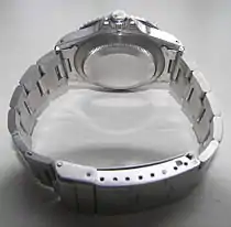 The Rolex Oyster Perpetual Submariner is a line of sports watches designed for diving and manufactured by Rolex, resistant to water and corrosion.[1] The first Submariner was introduced to the public in 1954 at the Basel Watch Fair.[2] It was the first watch to be waterproof up to 100m.[3] The Rolex Submariner is considered "a classic among wristwatches",[1] manufactured by one of the most widely recognized luxury brands in the world.[4][5][6][7] Due to its huge popularity, there are many homage watches by well-established watchmakers, as well as illegal counterfeits. The Rolex Submariner is part of Rolex's Oyster Perpetual line.[8]