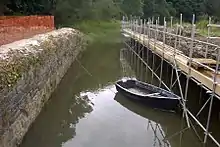 The canal comprises a sea lock at Landcross, a 60-foot inclined plane at Weare Giffard and an aqueduct of five arches over the River Torridge at Beam.[3] At the terminus of the canal at the limekilns at Rosemoor a leat supplies the canal to ensure a constant water level, which channels-off water from the River Torridge at Healand (or Darkham) Weir,[4] rebuilt in 1837.[5]