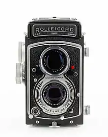The Rolleicord is a medium-format twin lens reflex camera made by Franke & Heidecke (Rollei) between 1933 and 1976. It was a simpler, less expensive version of the high-end Rolleiflex TLR, aimed at amateur photographers who wanted a high-quality camera but could not afford the expensive Rolleiflex. Several models of Rolleicord were made; the later models generally had more advanced features and tend to be valued higher in today's market.