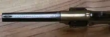 While the cartridge revolver was known in Europe, Rollin White's famous patent combined a cylinder and a box magazine. It was a completely unworkable design which never went into production (only one sample was built which malfunctioned dramatically),[2] yet it was the first US patent to include a cylinder bored through so that a revolver could be loaded from the breech. White's original solution for the misfires that plagued early revolvers was to plug the rear of the chambers with pieces of leather, but to admit cap fire the plugs were pierced, making them useless. The patent drawings imply that a percussion cap would have had to be applied to the single nipple for each shot, so it would have been far slower than the existing cap-&-ball revolvers.[3]