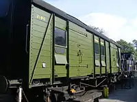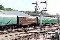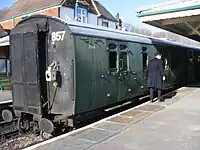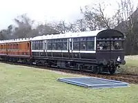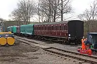 | LBSCR | 676 | Stroudley 4-wheel Brake Third | Built in 1875. Stored awaiting restoration. Moved into the OP4 carriage shed at Horsted Keynes in 2018.[20][21] Now on underframe of PMVY 1728 [22] | ![]() |