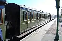 | LSWR | 1520 | Brake Third | Operational. Built in 1910. The carriage was relaunched into traffic in April 2010 following major rebuild from departmental use. The carriage has been finished in LSWR livery, and as such only sees limited use as it does not match other carriages of a similar vintage. | ![]() |