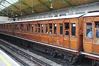 Four carriages built in 1898 and 1900 for use out of Baker Street station in London. Initially steam hauled, later used in electric trains, reverting to steam haulage on the Chesham branch in 1940. Purchased by the Bluebell Railway in 1961, and used until withdrawn in the late 1960s in need of major attention. Now returned to service and are unique as a close-coupled set of vintage carriages. The restoration team were the recipient of the Heritage Railways Association's award as overall winner of their 2006/7 carriage competition. The carriages have seen regular use on London Underground in recent years as part of steam operations on the Metropolitan line, and possess TOPS identities for movements over the Network Rail network to and from London.