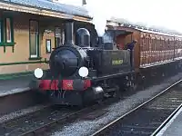 | LSWR | 0-4-0T | B4 | The Bulleid Society[8] | No. 96 Normandy Built in 1893. Arrived at Bluebell 1978. Funds are now being raised by the owning society, and it is hoped that any overhaul may commence after 21C123 Blackmoor Vale and 34059 Sir Archibald Sinclair are complete and the good condition of the loco is established. The need for this locomotive has become less with the acquisition of a small diesel locomotive for shunting duties and the use of other tank engines for steam shunts. On display in the newly refurbished display shed.[9] | ![]() |