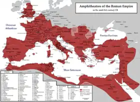 The Roman Empire was remarkably multicultural, with "a rather astonishing cohesive capacity" to create a sense of shared identity while encompassing diverse peoples within its political system over a long span of time.[99] The Roman attention to creating public monuments and communal spaces open to all—such as forums, amphitheatres, racetracks and baths—helped foster a sense of "Romanness".[100]