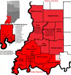 ![]() Map of the Diocese of Evansville | |