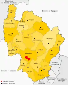 The diocesan territory includes the municipalities of Albán, Bojacá, El Rosal, Facatativá, Funza, Guayabal de Síquima, La Vega, Madrid, Mosquera, Nimaima, Nocaima, Quebradanegra, San Francisco de Sales, Sasaima, Subachoque, Supatá, Tabio, Tenjo, Tobía, Útica, Vergara, Villeta and Zipacón in Cundinamarca.[2]