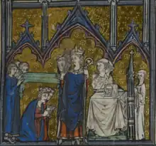 Opening illustration from Roman de Marques de Rome in the Chansonnier d'Arras