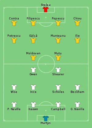 Emerich Jenei, back as coach, threw caution to the wind in the last match in Charleroi against England, a match which Romania had to win. Defender Cristian Chivu's cross went in off the post in the 22nd minute but, despite Romania dominating, England led at half-time through an Alan Shearer penalty and a late Michael Owen goal after he rounded goalkeeper Bogdan Stelea to score a tap-in, both in the last five minutes of the half. Romania attacked after the break and were quickly rewarded; Dorinel Munteanu punishing a poor punch from Nigel Martyn, a late replacement for injured goalkeeper David Seaman, to equalize three minutes after the restart. England cracked under the pressure. Unable to retain possession or pose an attacking threat, they fell deep and late on Phil Neville, playing out of position at left-back, conceded a penalty scored by Ioan Ganea in the 89th minute.