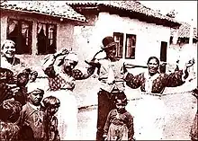 The Romani people are a distinct ethnic and cultural group of peoples living all across the globe, who share a family of languages and sometimes a traditional nomadic mode of life.[1] Though their exact origins are unclear, central India is a notable point of origin.[2] Their language shares a common origin with, and is similar to, modern-day Gujarati and Rajasthani, borrowing loan words from other languages as they migrated from India. In Europe, even though their culture has been victimized by other cultures, they have still found a way to maintain their heritage and society.[3][4]