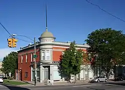 It was designed in 1889 by the Baerresen Brothers, Harold and Viggio, for use by five storefronts on the street level, as a rooming house on the second floor, and possibly also as a blacksmith shop in the basement.[2]