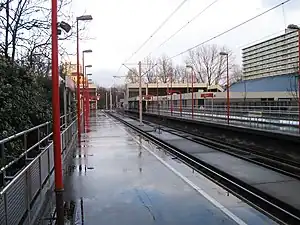 Romeynshof is a station on line A of the Rotterdam Metro system, and is situated in Rotterdam-Ommoord. It is located between Graskruid station, where lines A and B split, and Binnenhof station, the northern terminus of line A.